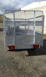 Ridelles hauteur 300 mm, en tôle acier profilée Réhausses grillagées hauteur 640 mm (volume utile 2,46m3).